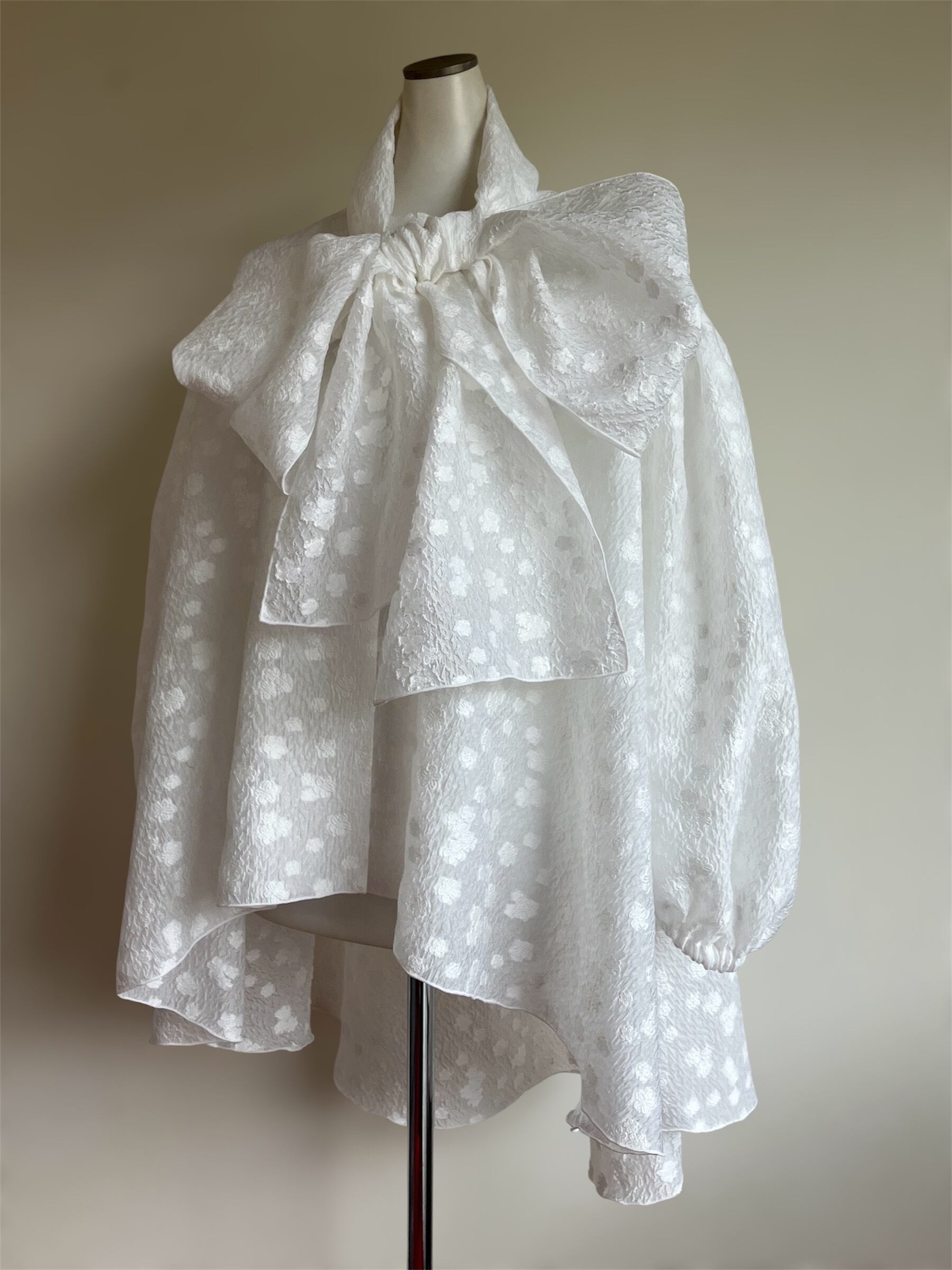 ドライクリーニングをおすすめしますが、手洗いも可能です。手洗いの際は30℃のぬるま湯で中性洗剤を十分に溶かしてから、ブラウスを裏返し、優しく押し洗いしてください。形を整えて日陰で平干しし、アイロンは中温以下で当て布をしてお手入れください。乾燥機のご使用はお避けください。