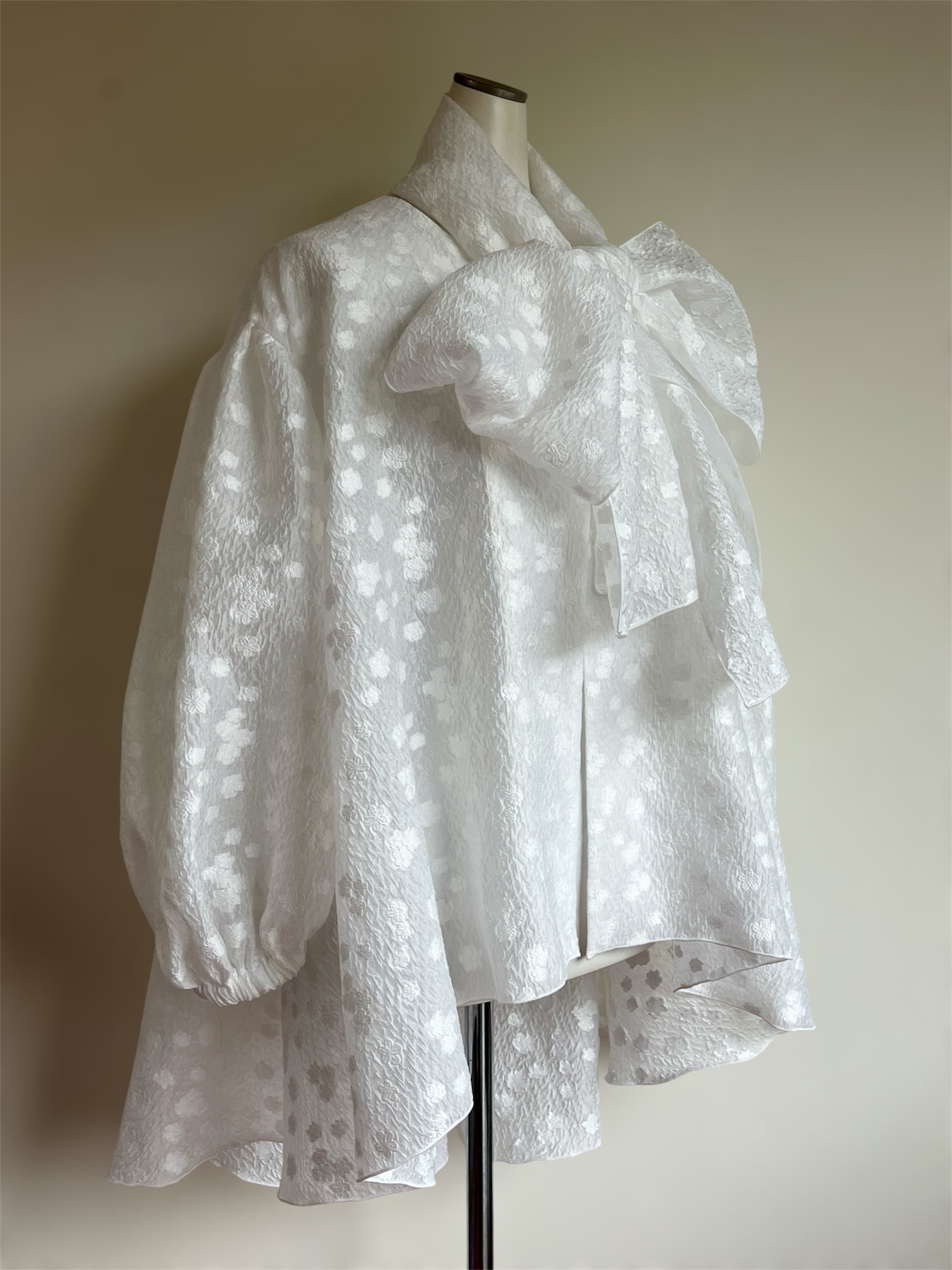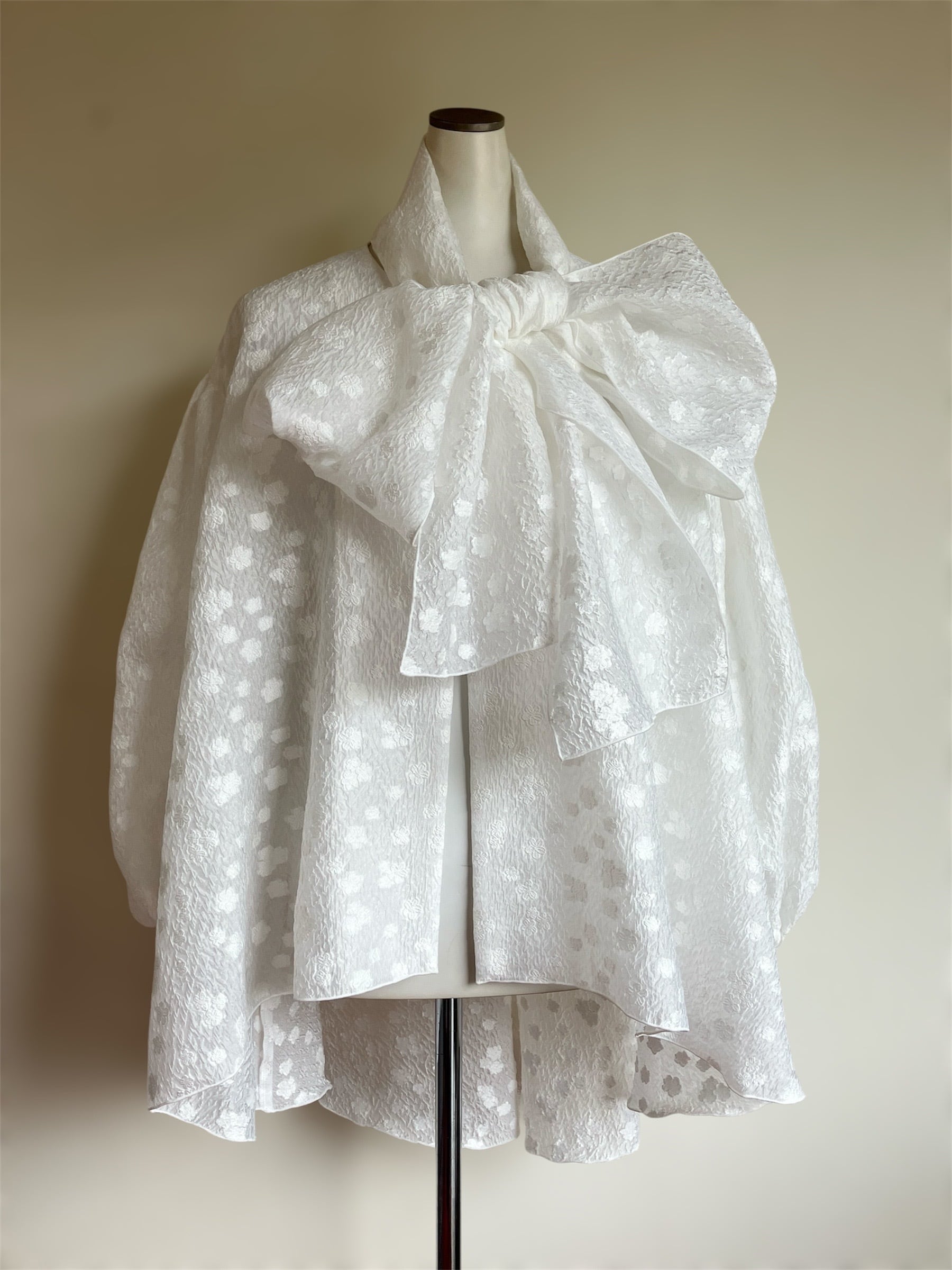 エレガンス溢れるボレロ風ブラウスにストールがセットされたBlanc Natureの一着は、軽やかでありながら華やかさを引き立てるデザインです。リボンで結ぶスタイルが女性らしさを際立たせ、日常使いから特別な日まで多彩なコーディネートをお楽しみいただけます!