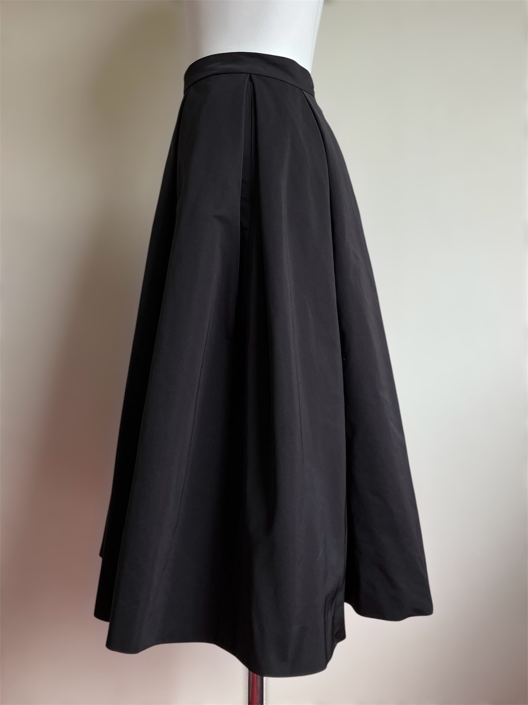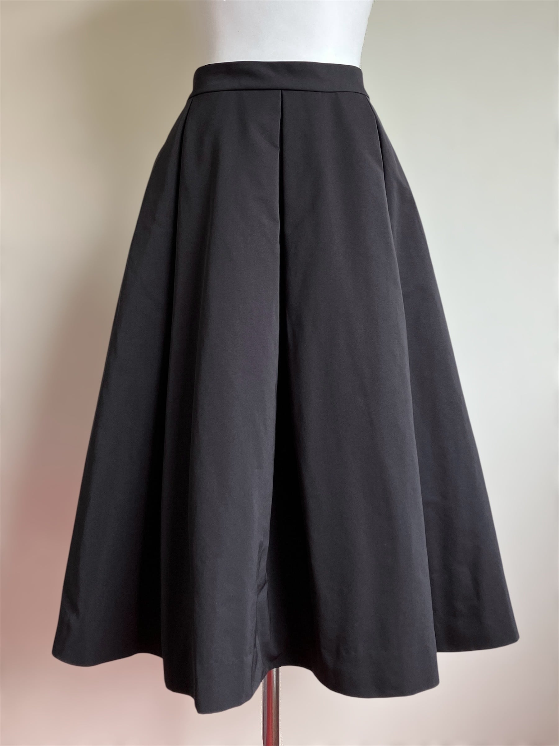 ドライクリーニングをおすすめしますが、手洗いも可能です。手洗いの際は30℃のぬるま湯で中性洗剤を十分に溶かしてから、スカートを裏返し、優しく押し洗いしてください。形を整えて日陰で平干しし、アイロンは中温以下で当て布をしてお手入れしてください。乾燥機のご使用はお避けください。