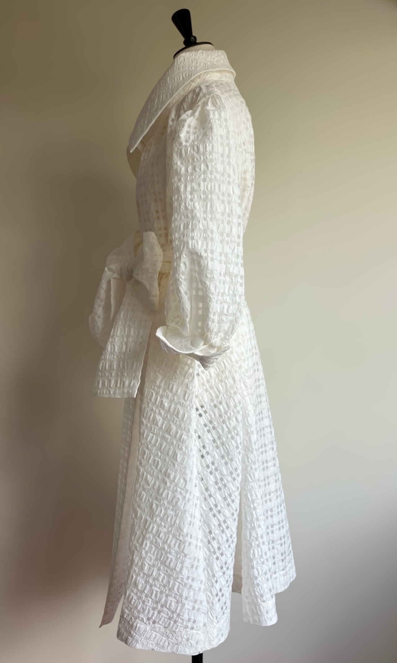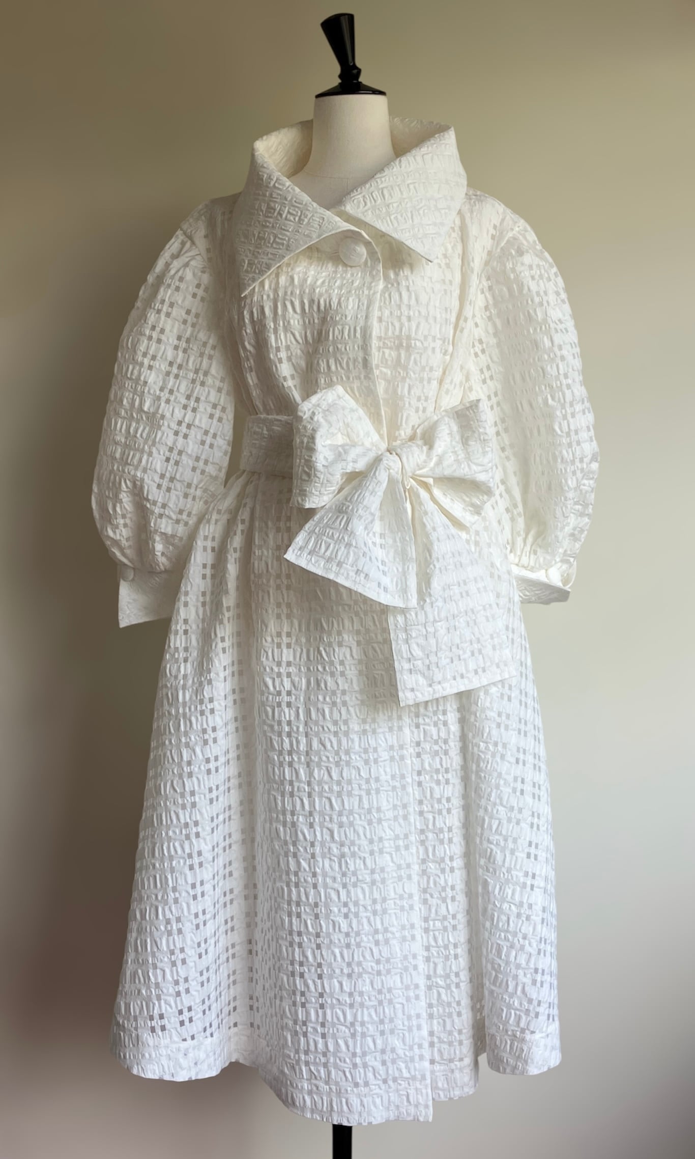 ドライクリーニングをおすすめしますが、手洗いも可能です。手洗いの際は30℃のぬるま湯で中性洗剤を十分に溶かしてから、ワンピースを裏返し、優しく押し洗いしてください。形を整えて日陰で平干しし、アイロンは中温以下で当て布をしてお手入れしてください。乾燥機のご使用はお避けください。