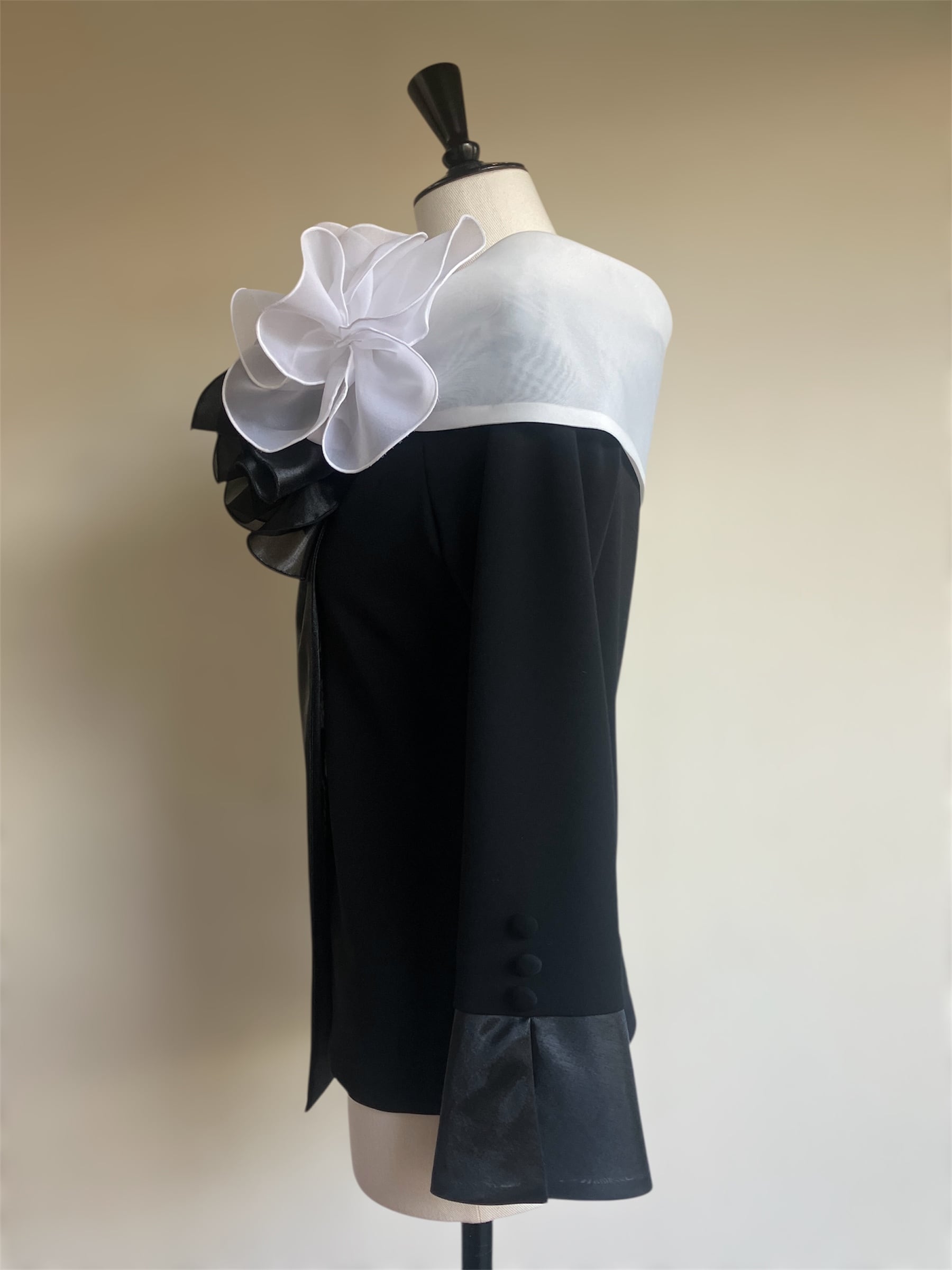 (38号)肩幅:36.5cm バスト:85cm ウエスト:73.6cm 裾幅:85.2cm CB丈:51cm 袖丈:40.5cm+カフス 11cm 袖幅:29.2cm 袖口幅:21.5cm
