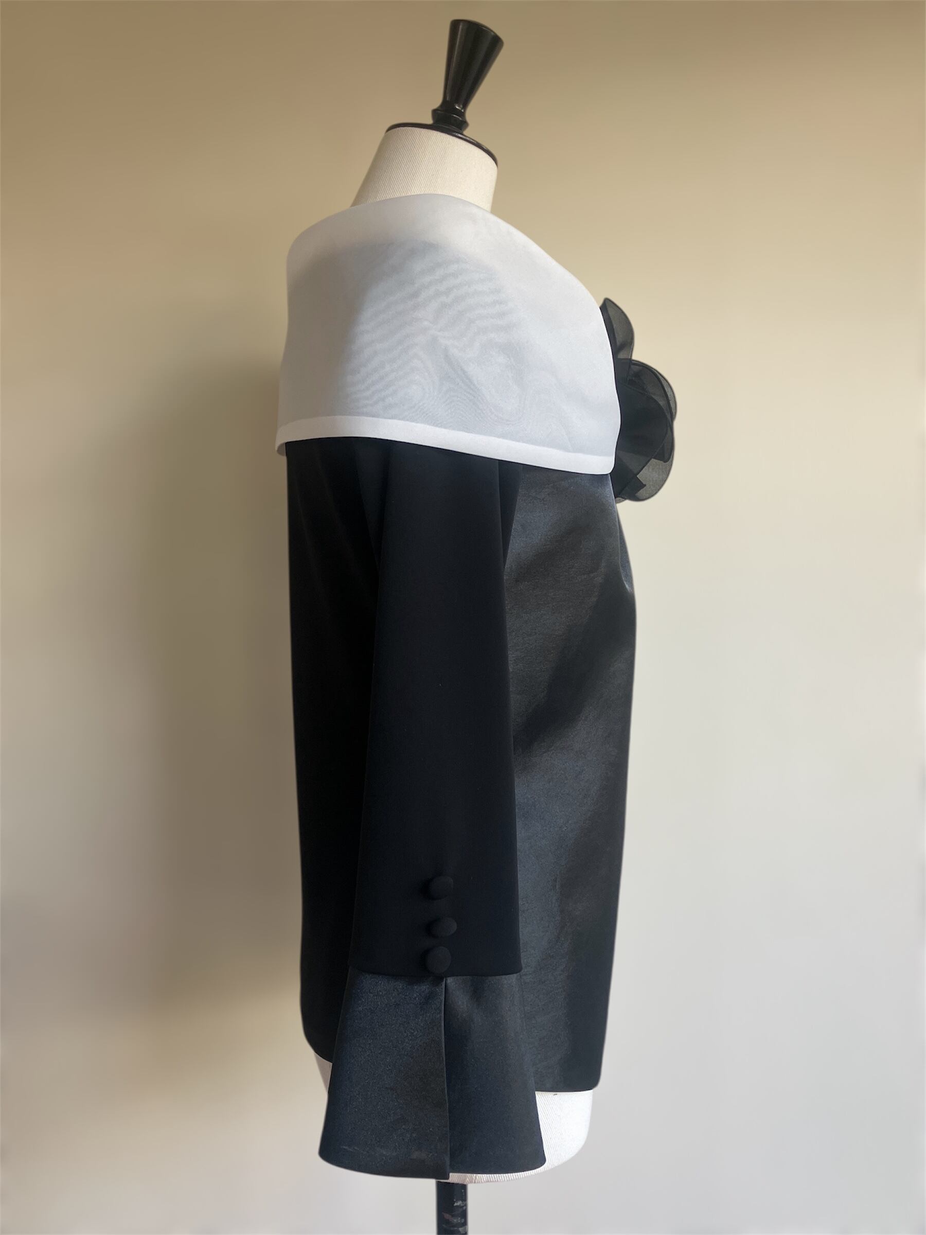 (40号)肩幅:37.5cm バスト:91cm ウエスト:80.6cm 裾幅:91.2cm CB丈:52cm 袖丈:41.5cm+カフス 11cm 袖幅:30.8cm 袖口幅:22.5cm
