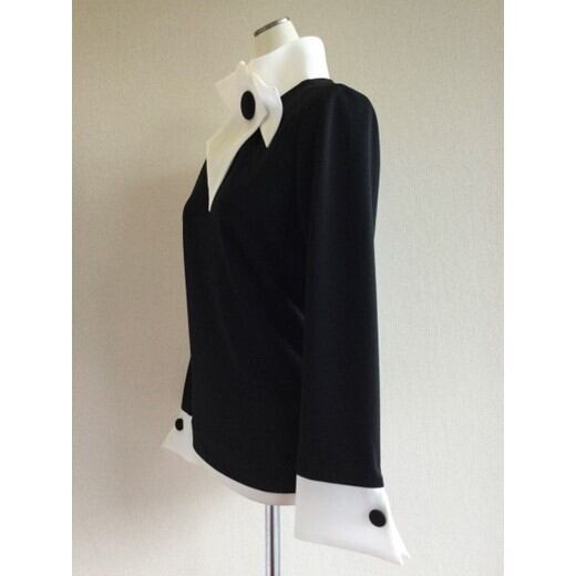 かぶりのブラウスですが、衿部分にボタンがあります。