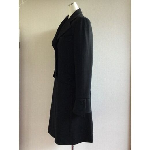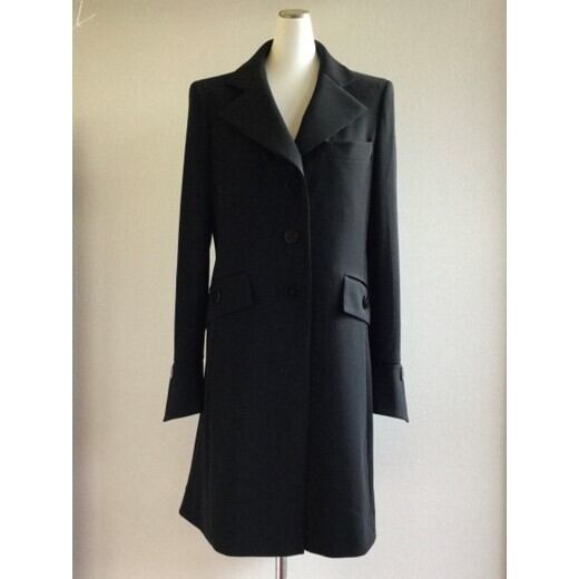 すっきりとしたシルエットで、シンプルなデザインのロングジャケット。